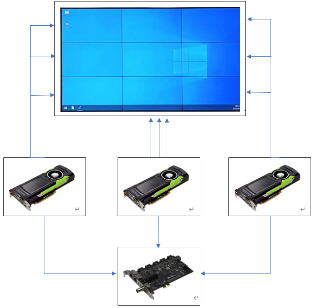 金品“多顯示器解決方案”采用NVIDIA Mosaic技術(shù),由金品KG 4204-V3服務(wù)器做為基座,通過NVIDIA專業(yè)可視化顯卡與SYNC-II卡,可實現(xiàn)2、4、8、12、16個顯示屏的拼接,將多臺顯示器作為單個桌面進(jìn)行處理,支持高達(dá)16K高清分辨率。