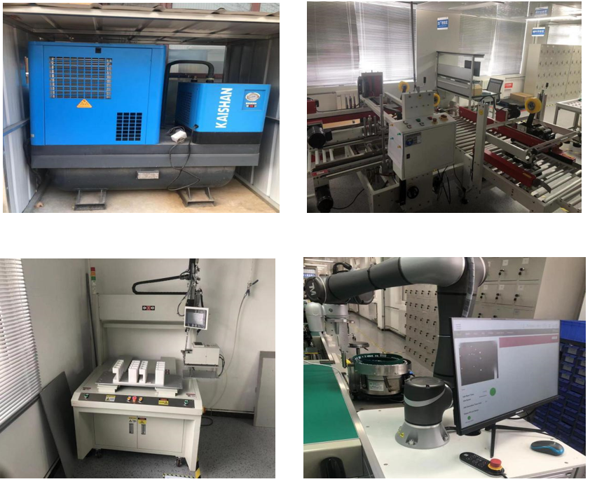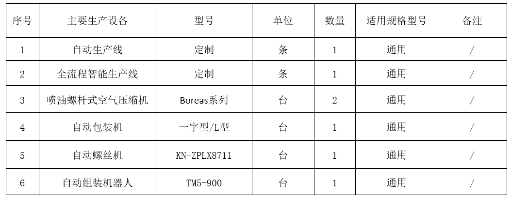 公司目前現(xiàn)有自動(dòng)生產(chǎn)線1條、全流程智能生產(chǎn)線1條,其他生產(chǎn)設(shè)備還包括:自動(dòng)包裝機(jī)1臺(tái)、自動(dòng)螺絲機(jī)1臺(tái)、自動(dòng)組裝機(jī)器人1臺(tái),實(shí)現(xiàn)全程人機(jī)協(xié)作流水線裝配,日均產(chǎn)能400臺(tái)。