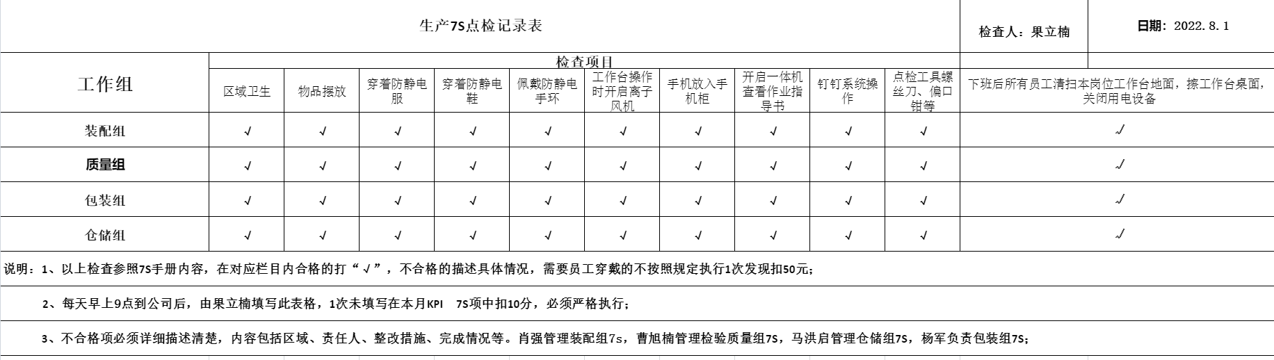 7S(整理、整頓、清掃、清潔、素養(yǎng)、安全、節(jié)約)管理是指在生產(chǎn)現(xiàn)場(chǎng)對(duì)人員、機(jī)器、材料、方法、信息等生產(chǎn)要素進(jìn)行有效管理。7S管理保證了公司的生產(chǎn)和辦公環(huán)境、良好的工作秩序和嚴(yán)明的工作紀(jì)律,同時(shí)也是提高工作效率,生產(chǎn)高質(zhì)量、精密化產(chǎn)品,減少浪費(fèi)、節(jié)約物料成本和時(shí)間成本的基本要求。
