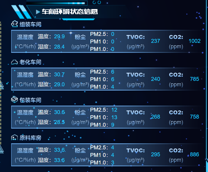 對(duì)倉(cāng)儲(chǔ)與生產(chǎn)區(qū)域?qū)嵤貪穸裙芾恚ㄟ^(guò)物聯(lián)網(wǎng)設(shè)備,實(shí)時(shí)監(jiān)控并上傳環(huán)境溫濕度信息至金品智能制造數(shù)字化管理平臺(tái)。當(dāng)環(huán)境溫濕度與灰塵顆粒物超過(guò)既定閥值時(shí),系統(tǒng)自動(dòng)進(jìn)行報(bào)警提示。