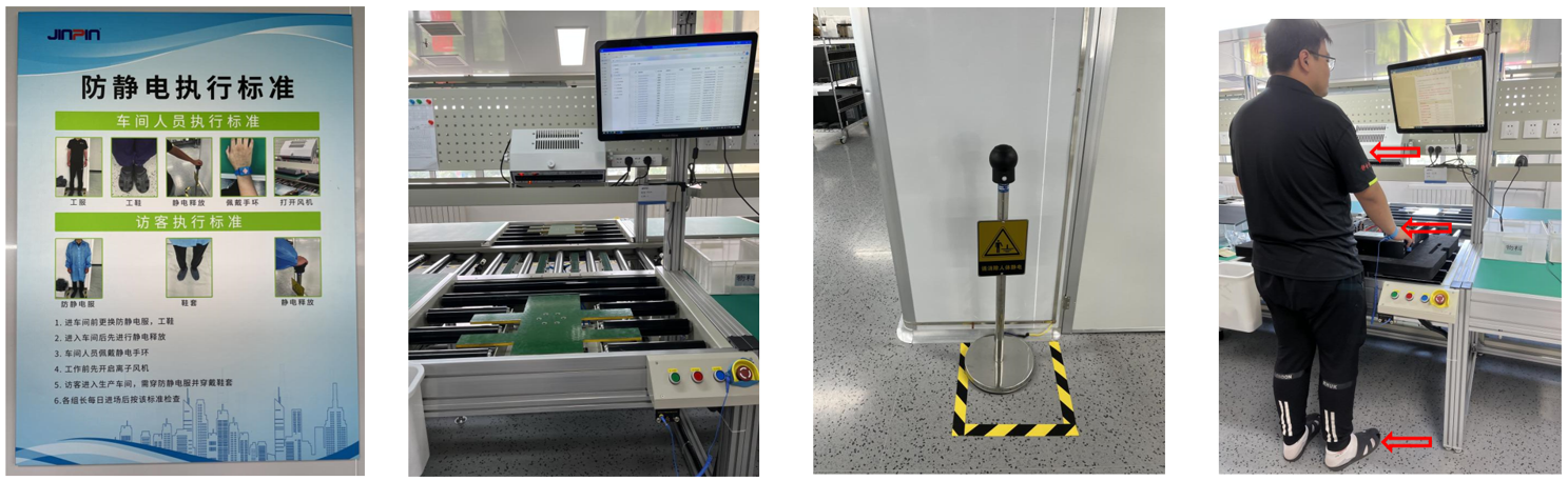 《防靜電執(zhí)行標(biāo)準(zhǔn)》 (作業(yè)位配備離子風(fēng)機(jī)) (靜電消除器) (作業(yè)人員:防靜電鞋、服,手環(huán))